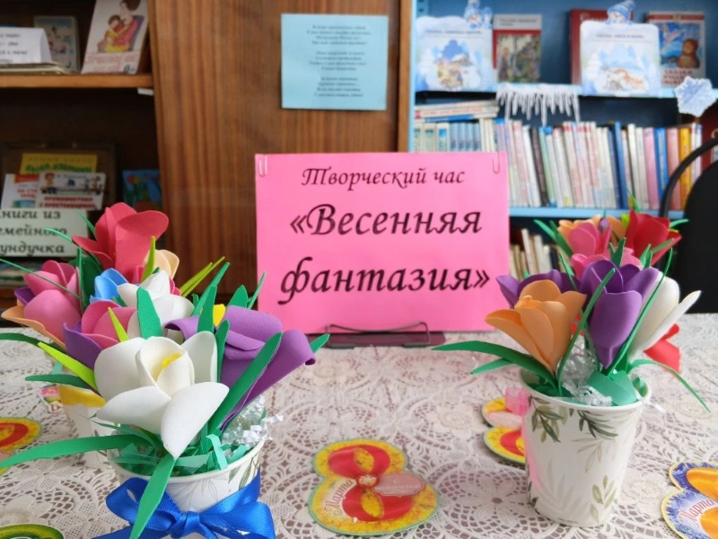 Под ее руководством участники изготовиликрасивые цветочные композиции из современного и удобного материала — фоамирана. Яркий букетик крокусов, созданный своими руками, подарил в этот день каждой женщине замечательное настроение и сталприятным подарком к 8 Марта.