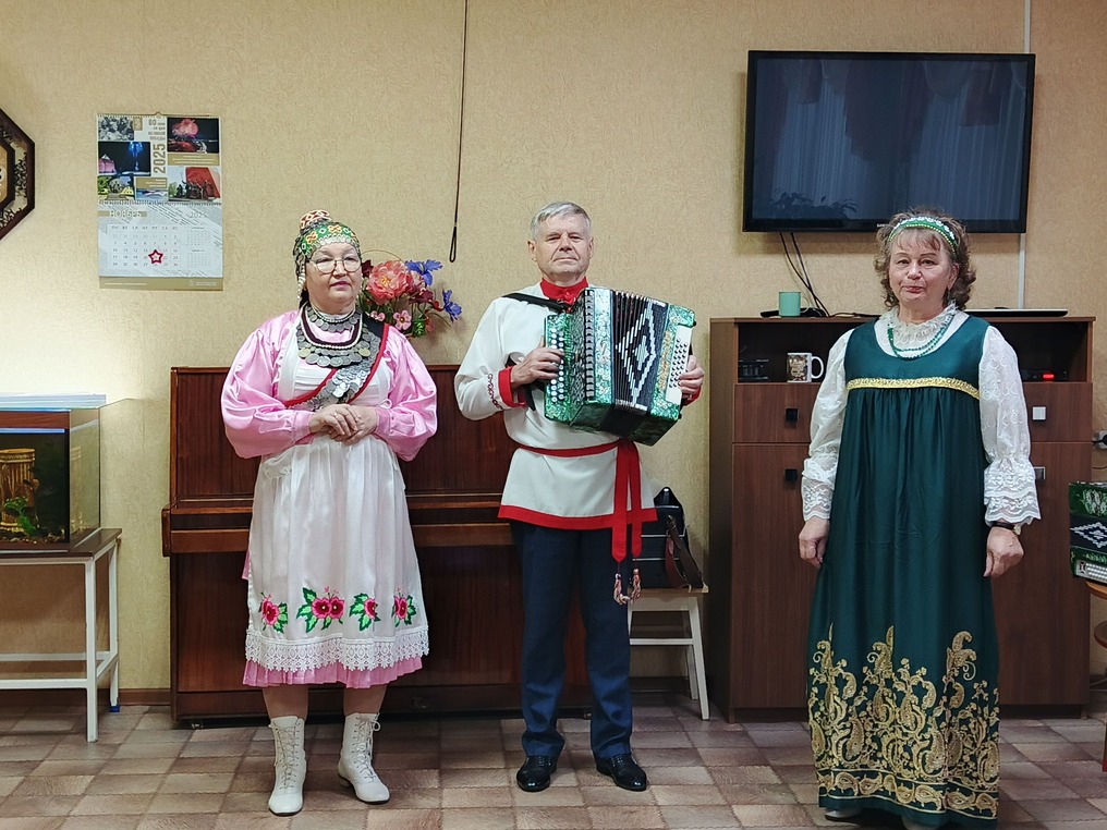 На прошлой неделе в отделении дневного пребывания пенсионеров нашего Центра состоялся замечательный концерт лирической песни "От чистого сердца…", который подарил нам талантливый дуэт Нины Мешковой и Юрия Долгова, а также замечательная Валентина Паламарчук. Наш уютный музыкальный зал был полон эмоций и тепла! 🎶❤️ Нина Алексеевна и Юрий Анатольевич выступили в красивейших национальных чувашских костюмах, которые не только удивили зрителей своим великолепием, но и рассказали о богатой культуре нашего народа. Мы узнали, что вес монисто на таких костюмах может достигать целых 24 кг!😮 Это действительно удивило всех присутствующих. Артисты исполнили множество народных чувашских песен, наполнив атмосферу праздника мелодиями, полными жизни и душевности. Кроме того, Нина Алексеевна разучивала с нашими пенсионерами народные чувашские танцы, было трогательно и очень весело. 💃🎤 Искренние благодарности от наших пенсионеров звучали в адрес выступающих, ведь концерт получился действительно от чистого сердца! Мы вновь хотим выразить огромную благодарность Нине Мешковой, Юрию Долгову и Валентине Паламарчук за этот чудесный вечер. С нетерпением ждем вас снова в нашем гостеприимном отделении дневного пребывания пенсионеров.🌟👏