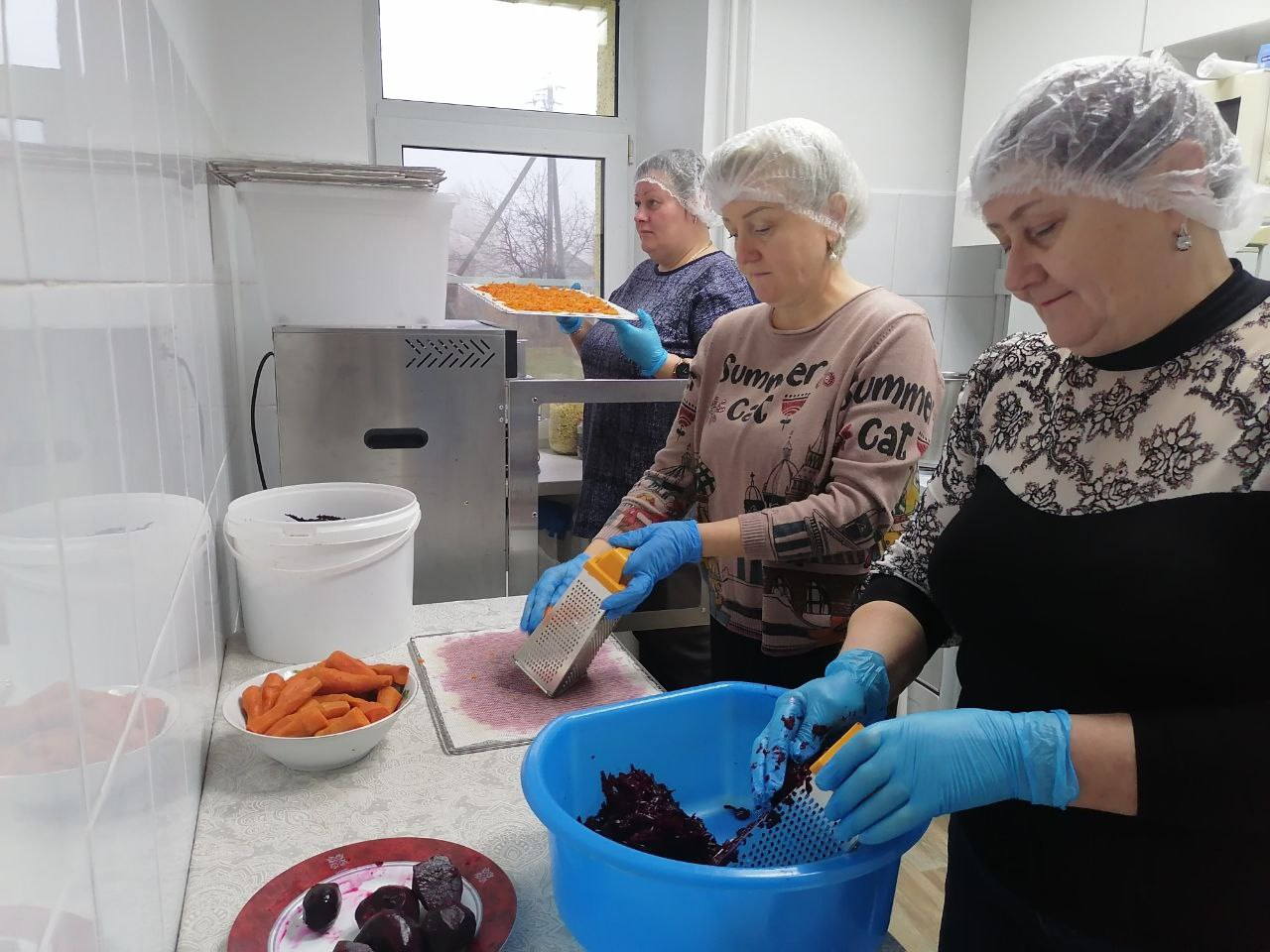 Сотрудники отделения "Специализированный жилой дом для граждан пожилого возраста и инвалидов" ГБУ "КЦСОН Краснобаковского муниципального округа" продолжают сушить овощи для изготовления сухих супов, отправляемых в зону действия СВО