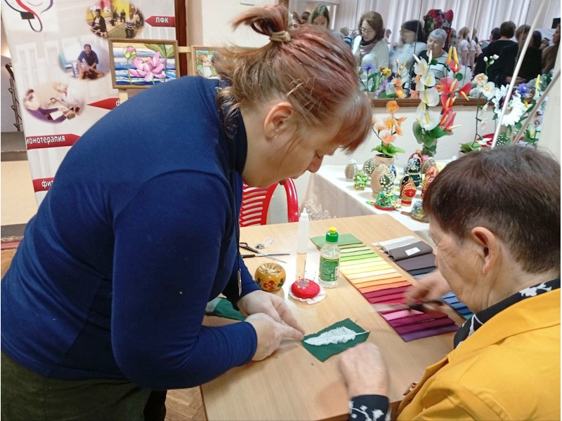В парке Швейцария в павильоне "Долголетие по-нижегородски" прошёл мастер-класс по вязанию крючком салфеток.