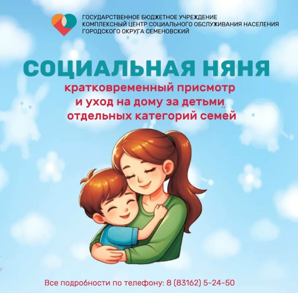 В нашем учреждении оказывается бесплатная услуга "Социальная няня" для семей с детьми до 3-х лет.